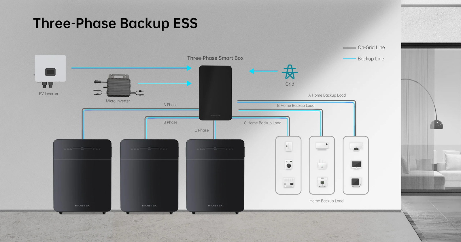 Vollständige Hausbackup-Unterstützung für Ein- und Dreiphasensysteme